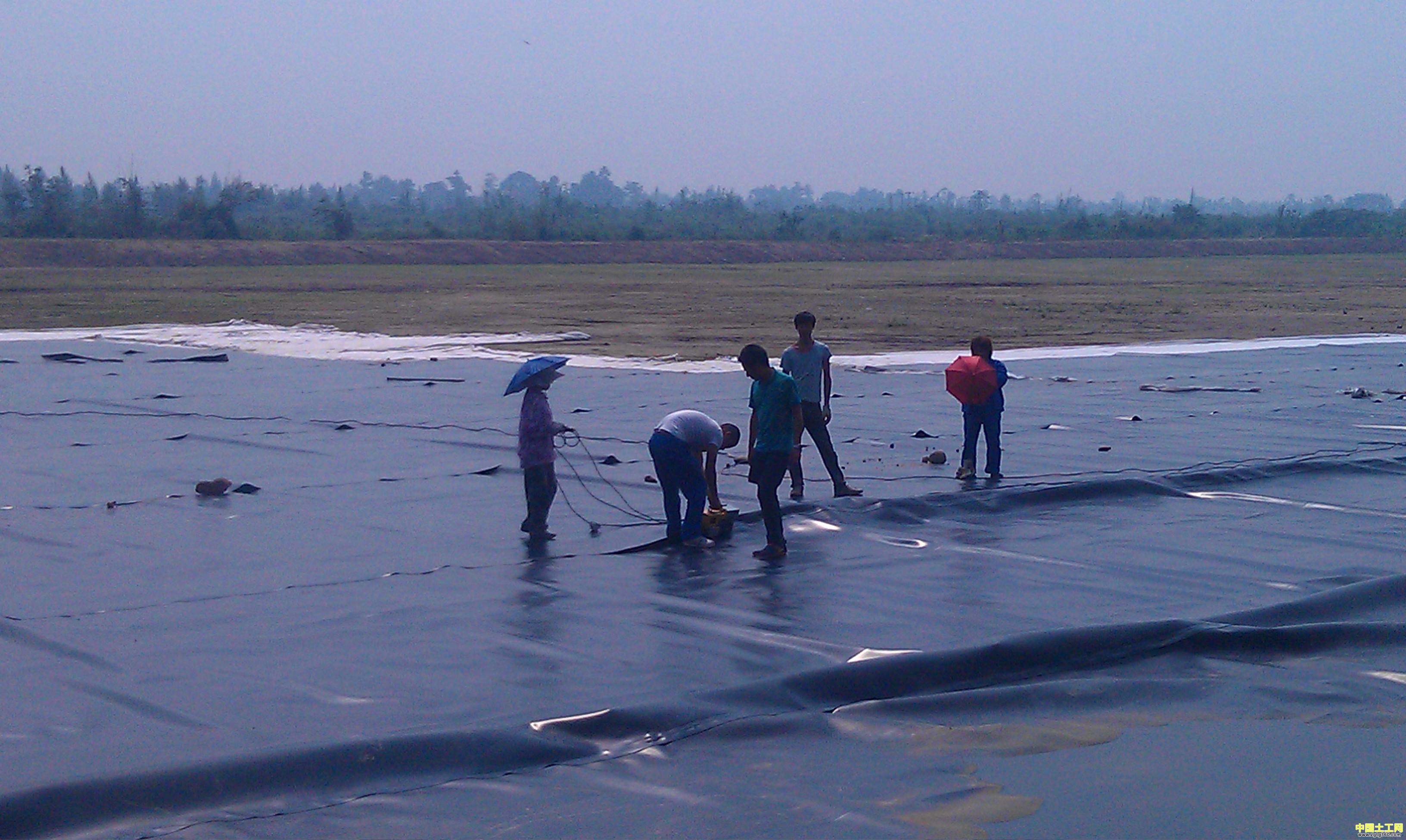 4、在進行鋪設的時候,土工膜不要拉的太緊了,在兩端埋在土體的部分成波紋狀比較好,特別是在與剛性的材料進行錨固時候,要有一定的伸縮量。